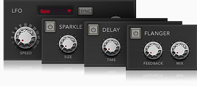 Generator wolnoprzebiegowy, flanger, delay i reverb dodają jeszcze więcej możliwości kreatywnych, rozszerzając możliwości regulacji kształtu i tekstury.
